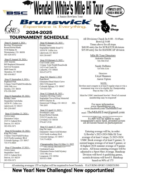 Wendell White’s Mile Hi Tour April 27, 2025 @ 8:00 am - 5:00 pm King Pin Lanes 3410 N Academy Blvd, Colorado Springs, CO $40
