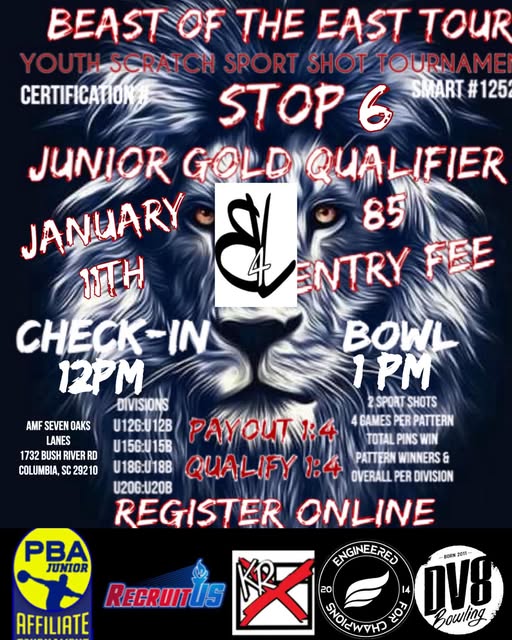 Beast Of The East January 11, 2025 @ 12:00 pm - 9:00 pm AMF Seven Oaks Lanes 1732 Bush River Rd, Columbia, SC $85