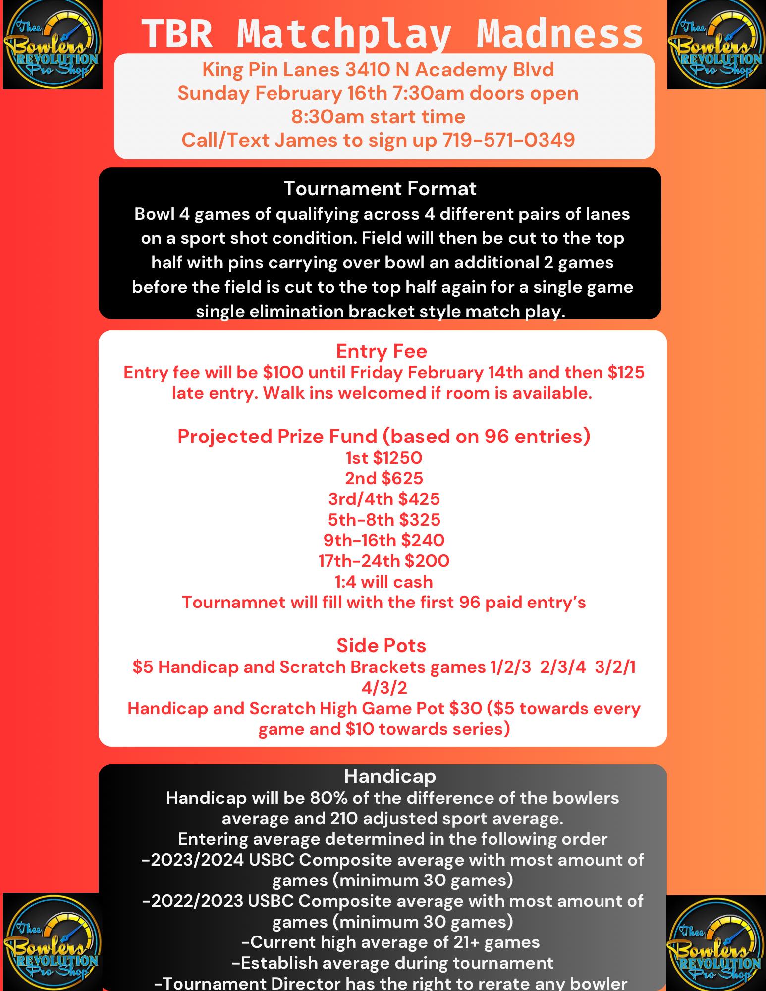 TBR Matchplay Madness February 16, 2025 @ 7:30 am - 3:30 pm King Pin Lanes 3410 N Academy Blvd, Colorado Springs, CO $100
