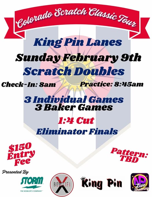 Colorado Scratch Classic Tour Scratch Doubles February 9, 2025 @ 8:00 am - 4:00 pm King Pin Lanes 3410 N Academy Blvd, Colorado Springs, CO $150